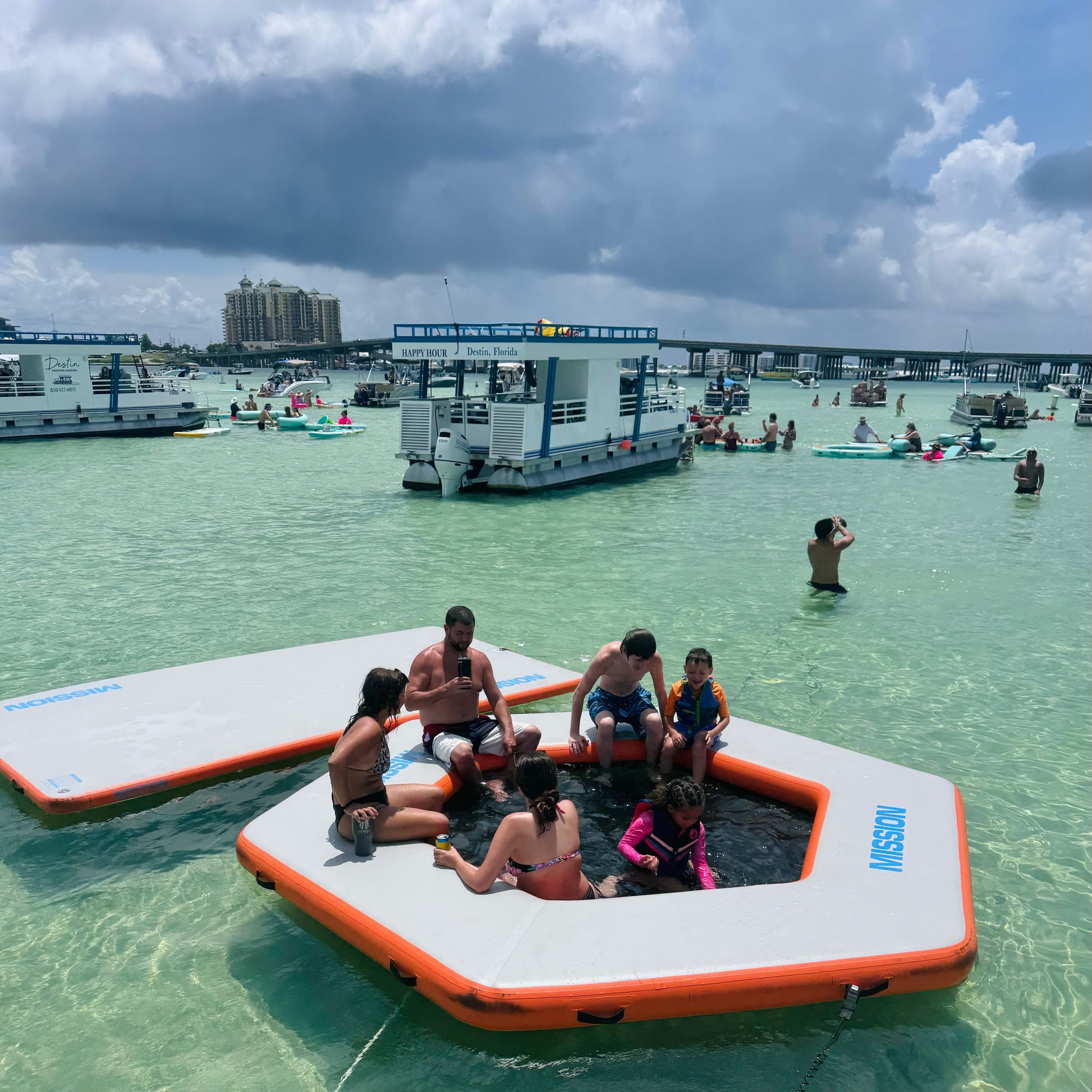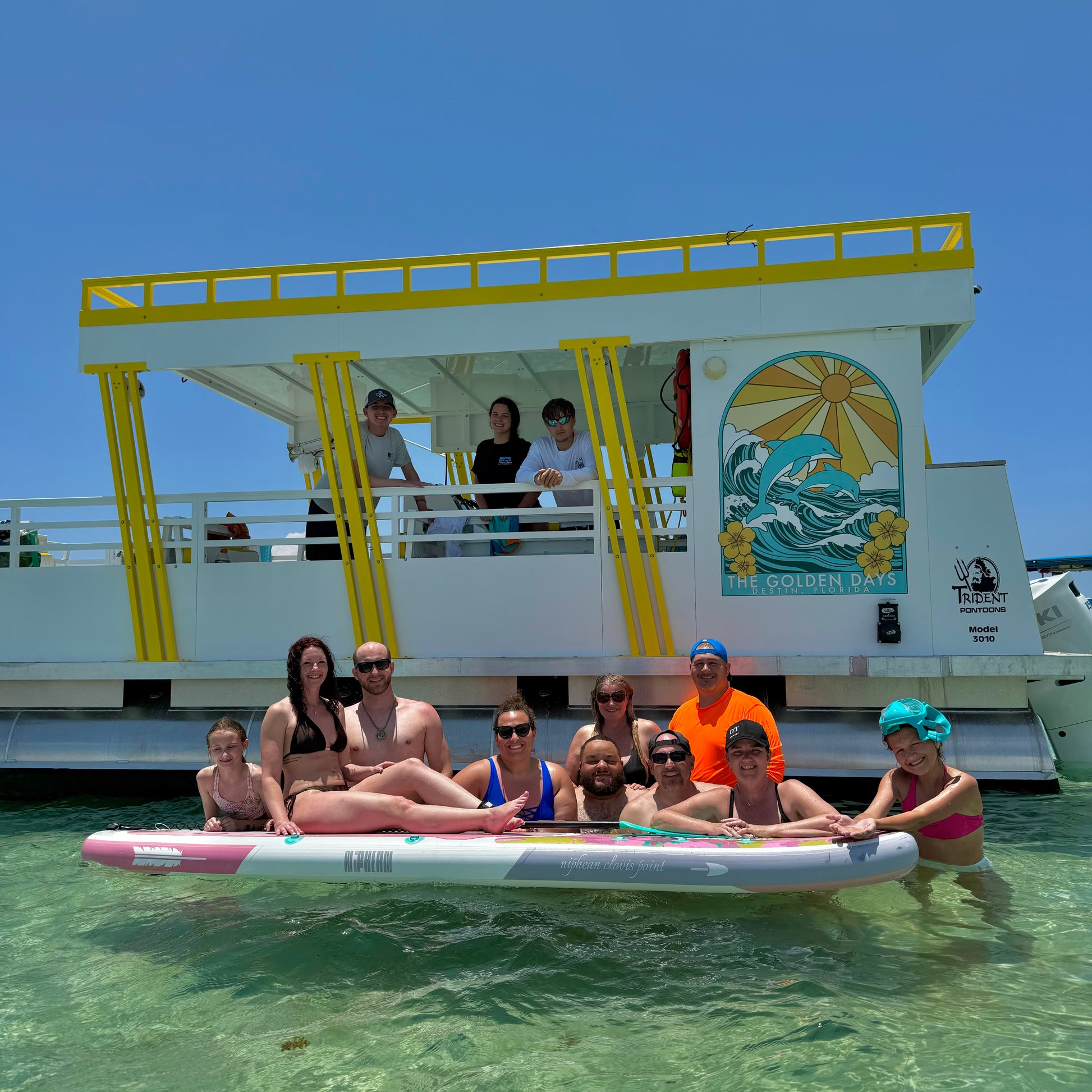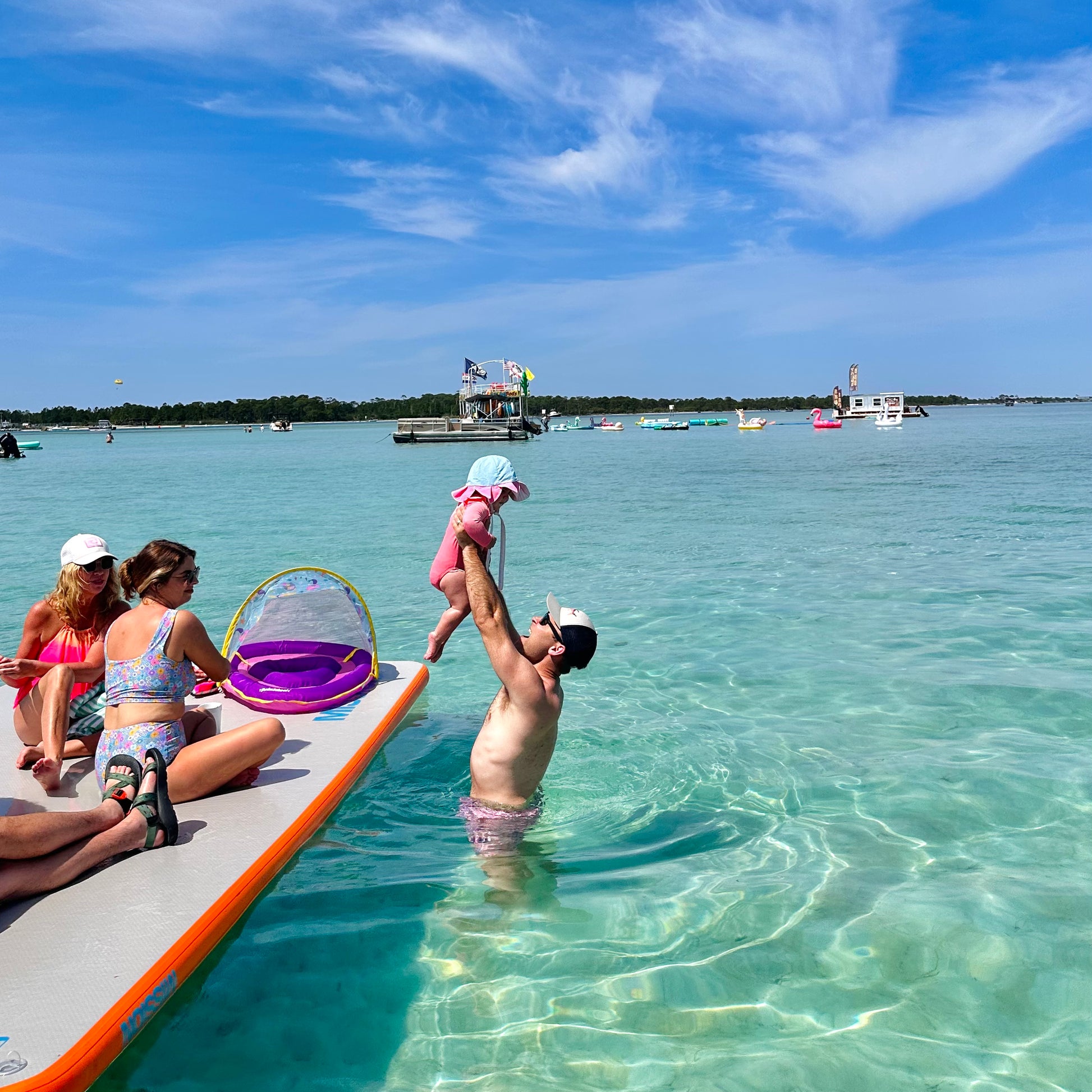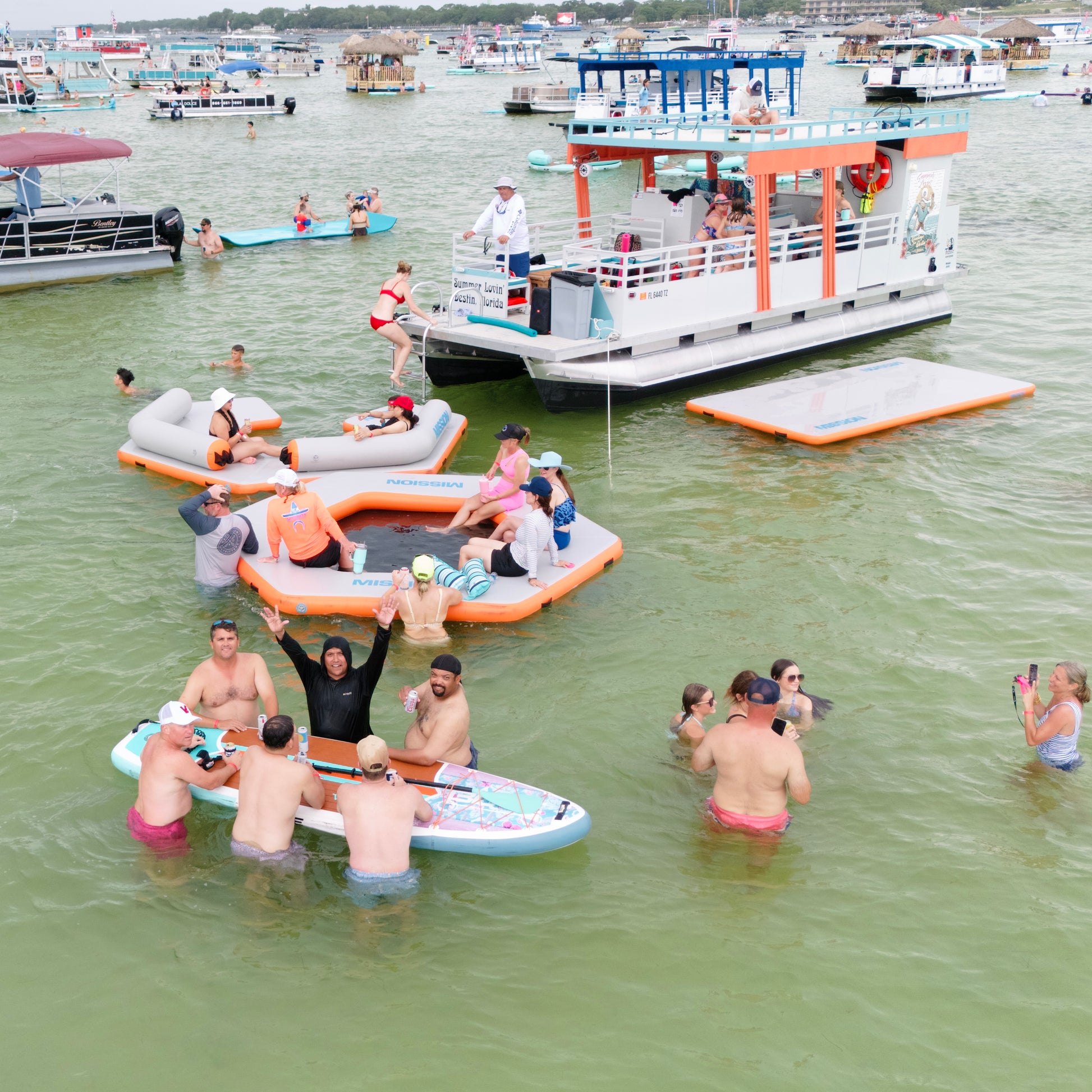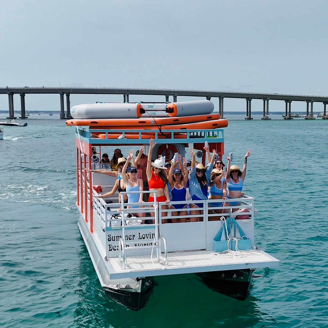 Pack like you would when visiting the beach or pool. Towels, sunscreen, swimsuits, coverups, drinks, snacks, water games, and floats are all recommended. You may also want to bring cash for Crab Island vendors if you would like to use their services, and gratuity for captain and crew (optional, but customary and appreciated!).