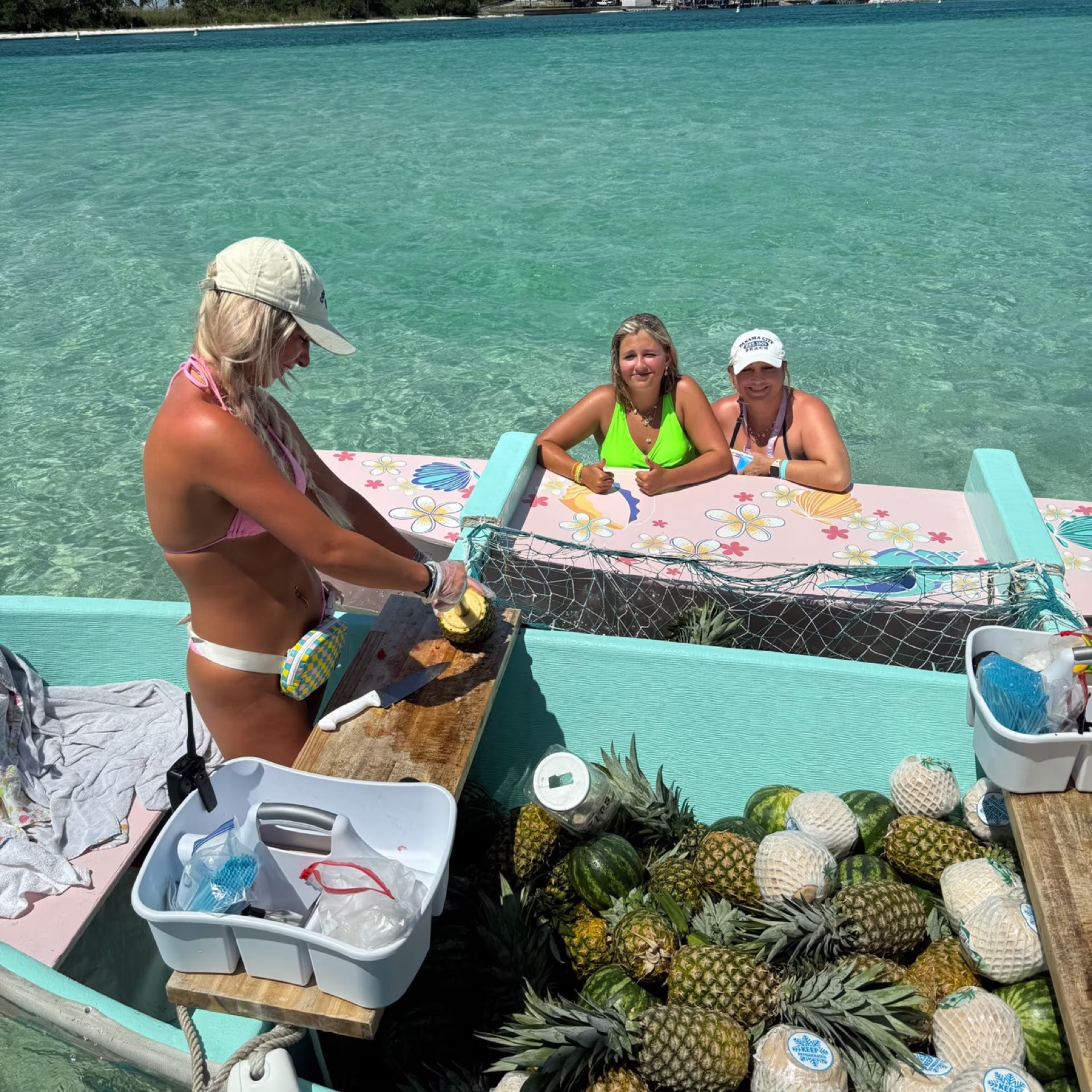 Pack like you would when visiting the beach or pool. Towels, sunscreen, swimsuits, coverups, drinks, snacks, water games, and floats are all recommended. You may also want to bring cash for Crab Island vendors if you would like to use their services, and gratuity for captain and crew (optional, but customary and appreciated!).