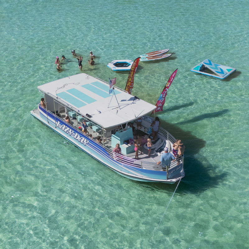 Pack like you would when visiting the beach or pool. Towels, sunscreen, swimsuits, coverups, drinks, snacks, water games, and floats are all recommended. You may also want to bring cash for Crab Island vendors if you would like to use their services, and gratuity for captain and crew (optional, but customary and appreciated!).